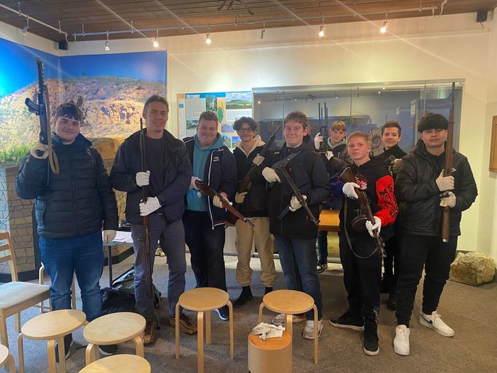 Dne 22.11.2023 jsme s devítkou navštívili výukový program v Městském muzeu Louny a navázali návštěvou Veletrhu středních škol na SŠ Generála Fajtla v Lounech. V Městském muzeu jsme prošli výukový program o zbraních první a druhé sv. války s ukázkami originálních exponátů.