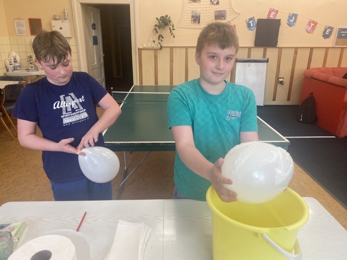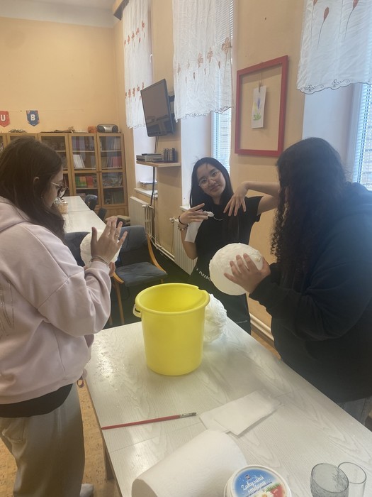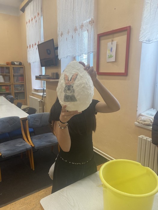 Ve školním klubu si děti vyzkoušely velikonoční tvoření pomocí ubrouskové techniky. Nafouknuté balónky potíraly lepidlem a zdobily ubrousky s jarními motivy. Po zaschnutí vznikla krásná dekorativní vajíčka, která si každý s radostí odnesl domů.