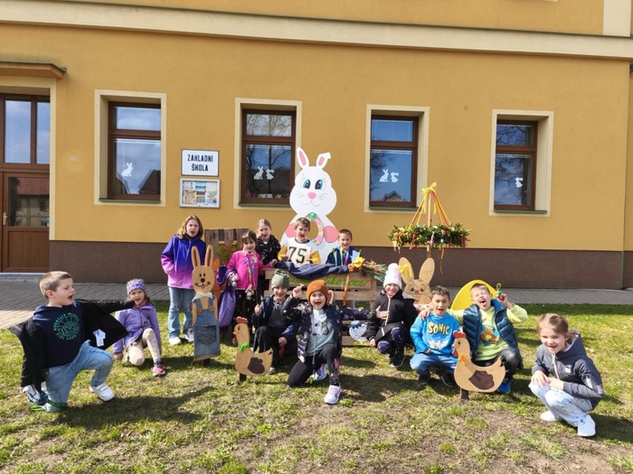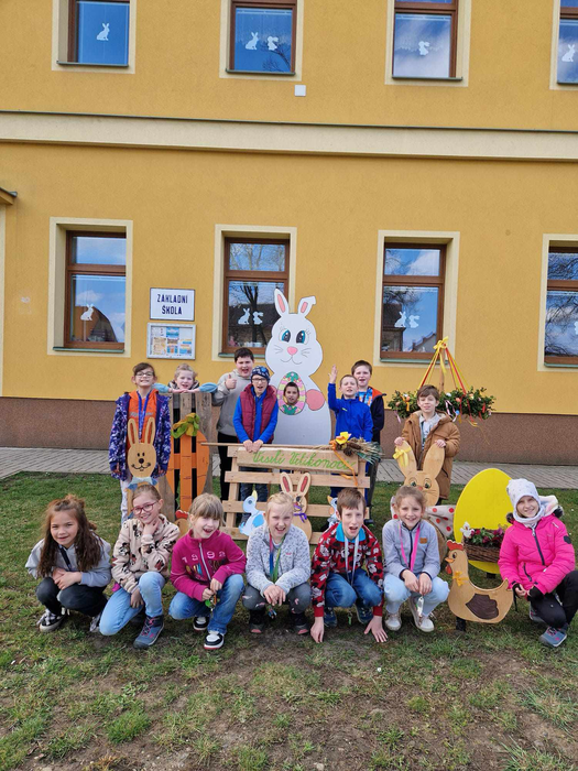Jaro je tady a s ním přichází i sváteční atmosféra Velikonoc. Společně jsme vytvořili krásnou výzdobu, která nyní zdobí prostor před školou. Veselý velikonoční zajíček, malované kraslice, dřevěné dekorace i jarní květinová výzdoba dodávají okolí veselou a barevnou atmosféru.