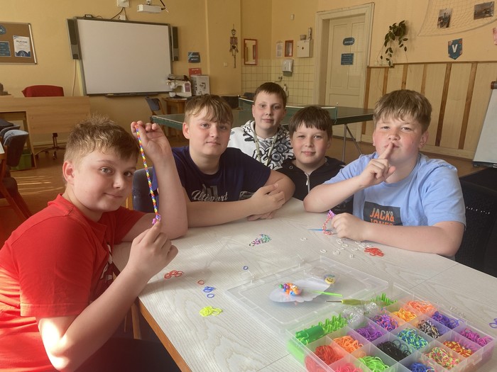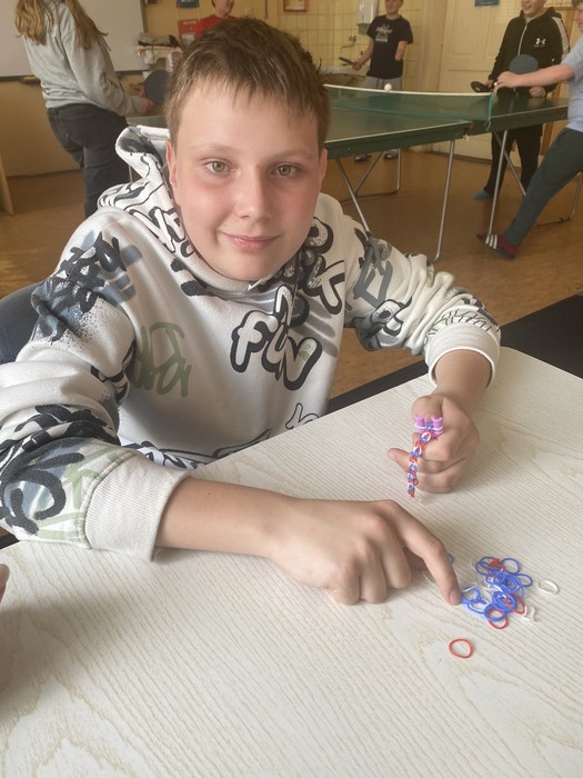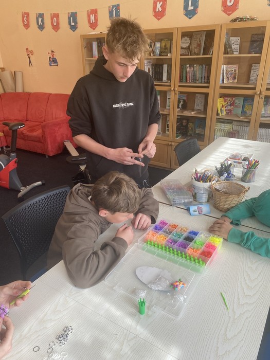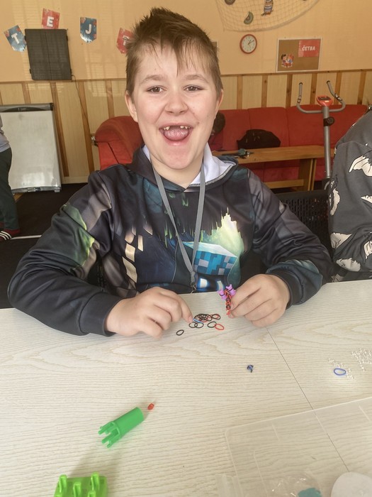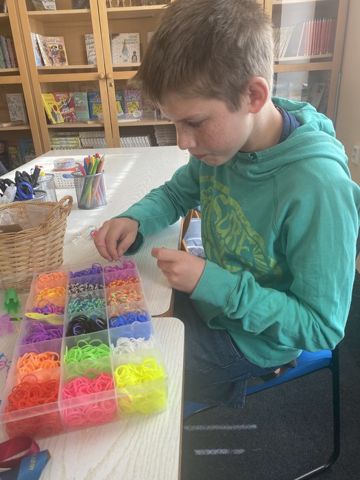 Ve školním klubu si děti vyzkoušely vyrábění náramků z barevných gumiček. Při tvoření si procvičily šikovnost a užily si spoustu zábavy.