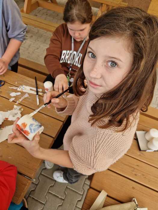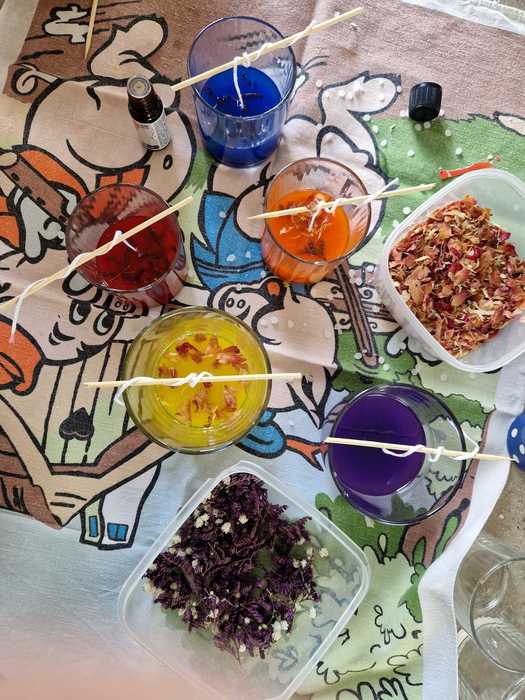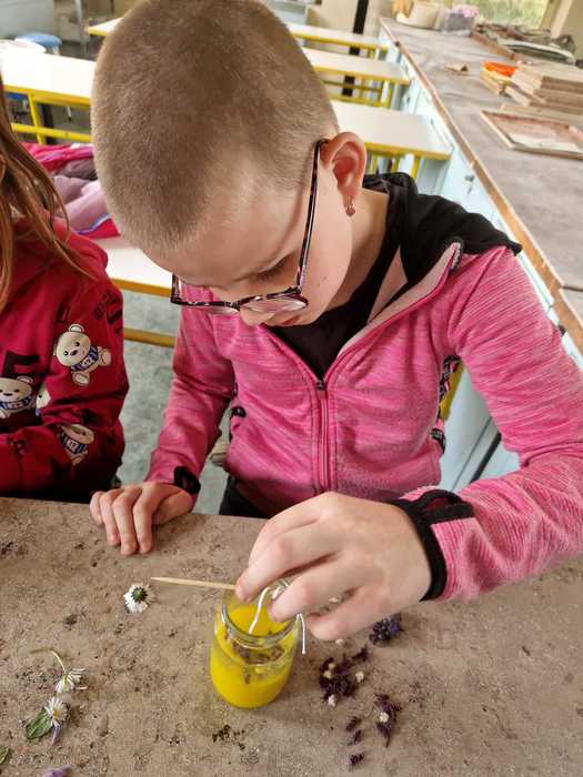 S dětmi ze školní družiny jsme tentokrát vyráběli svíčky. Vosk jsme rozehřáli ve vodní lázni, obarvili, nalili do nádoby, přidali vůni a dozdobili sušenými květy.