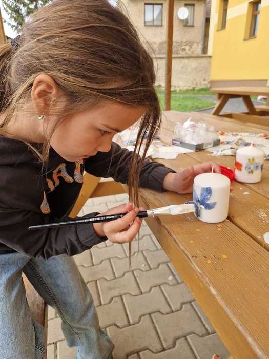 Také si děti vyzkoušely ubrouskovou techniku a vznikly tak krásně nazdobené svíčky.