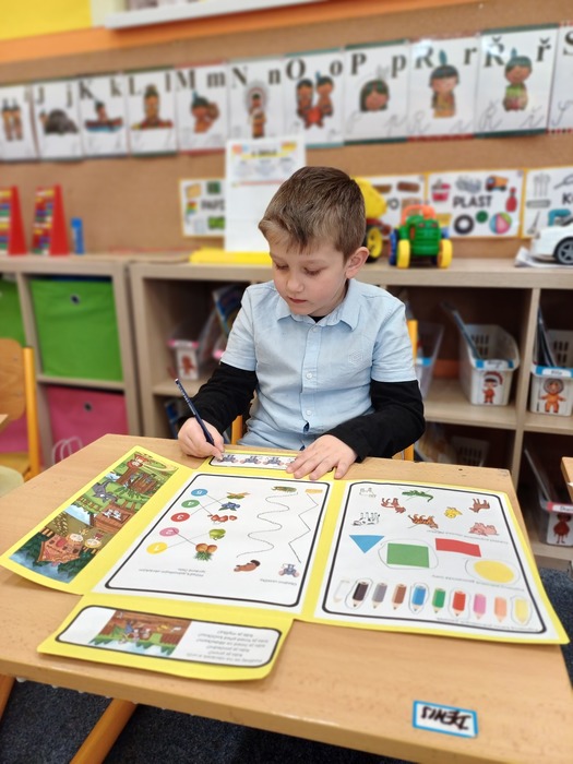 Děti si nejprve s paní učitelkou vyzkoušely ukázku obrázkového čtení a poté také různé úkoly pomocí lapbooku, který obsahoval úkoly a aktivity, jež by měly děti ovládat před vstupem do první třídy.