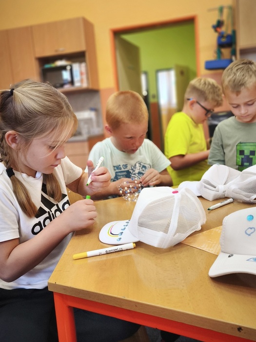 Vyzkoušeli jsme i malování na kšiltovky, tvořili podzimní obrázky na nástěnky a každý si přišel na své. Navštívili jsme také hasičskou zbrojnici, kde jsme se dozvěděli spoustu zajímavostí, a nechyběl ani výlet do plavecké haly v Lounech.