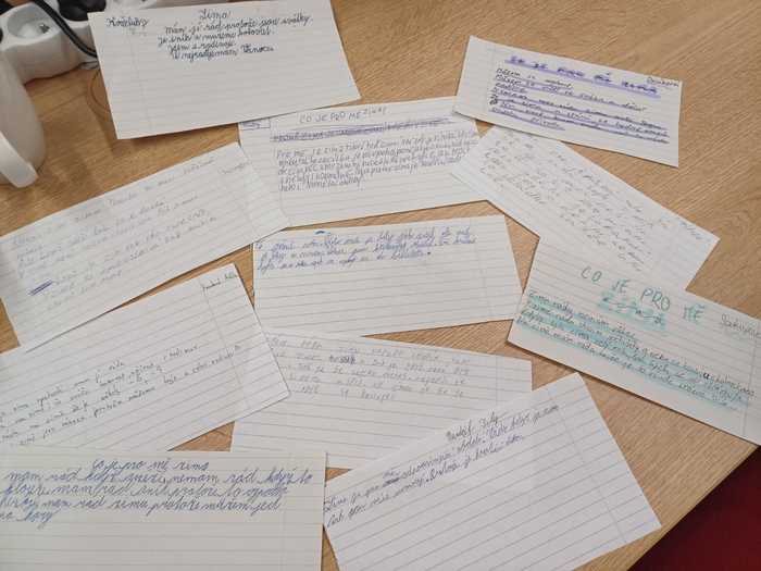 Po návratu do třídy žáci sdíleli své odpovědi a zážitky se spolužáky. Sdílení podpořilo otevřenou diskusi a umožnilo každému prezentovat své nápady a inspirovat ostatní.