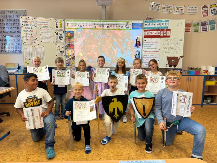 Druháčci si v pátek připomněli Den české státnosti a svatého Václava. O sv. Václavovi četli, se sv. Václavem počítali, poznatky si zapisovali a lepili.