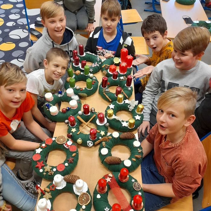 První adventní neděle je za dveřmi a děti z páté třídy si na hodině pracovních činností připravily tradiční symbol svátků v podobě adventního věnce. Věnce ozdobily čtyřmi svíčkami a na železnou neděli tak mohou podle tradic společně se svými blízkými zapálit první svíčku symbolizující naději a očekávání.