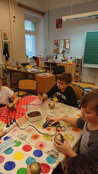 Žáci třetí třídy zahájili adventní čas výrobou ozdob na vánoční stromeček ve vánočních dílnách.