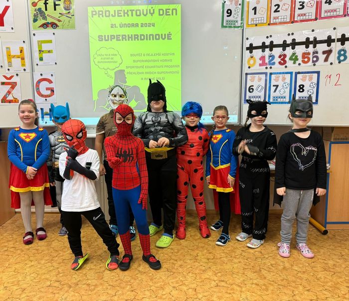 Ve středu 21. 2. pak přišli žáci v kostýmu svého oblíbeného hrdiny nebo superhrdiny. Během promenády masek se na prvním stupni všichni Superhrdinové představili a soutěžilo se o nejlepší superhrdinský kostým.