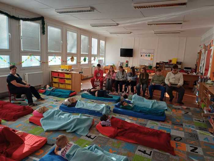 Sedmáci se letos na Advent připravovali již od listopadu. V hodinách českého jazyka se vydali na cestu vymýšlení vánočních příběhů. Urodilo se jich opravdu požehnaně. Své texty zpracovali, naučili se je pěkně číst a ve čtvrtek 11.12. 2025 se s nimi vydali do Mateřské školy v Lenešicích. Čekaly tam na ně 2 skupiny usínálků. Menší i větší děti si postupně vyslechly některé z napsaných vánočních příběhů a mnohým se dokonce podařilo při čtení usnout.