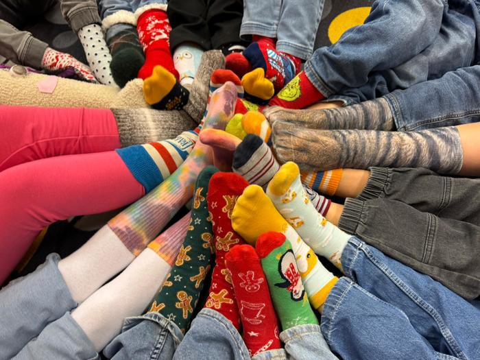Dnes, 16. prosince, jsme měli ve škole "Den bláznivých ponožek". Nebyl to obyčejný den, protože všichni přišli v ponožkách, které byly veselé, barevné, pruhované, puntíkaté, dlouhé i krátké, tenké i tlusté. Některé ponožky měly obrázky pizzy, jiné smajlíky, pivečka, pařáty, hranolky nebo zvířátka. Spousta žáků měla ponožky s vánočními motivy. A našly se dokonce i s oblíbeným krtečkem. Někteří to však vyřešili úplně po svém a jednu ponožku si třeba obrátili naruby nebo si navlékli na nožky rukavice. Zapojili se i někteří učitelé a i oni měli na nohou originality sobě vlastní - například pan učitel Randis zvolil místo ponožek gumové rukavice ☺. Proč ne? Bylo to jako duhový cirkus na nohách. Když jsme ráno přišli do třídy, hned jsme koukali, kdo má nejbláznivější ponožky. Smáli jsme se, ukazovali si je navzájem a dělali malou přehlídku. Celá škola byla barevná. Den bláznivých ponožek nám ukázal, že být jiný je fajn. Nemusíme mít všechno stejné, právě ta rozdílnost byla veselá. Na konci dne jsme si řekli, že ponožky nejsou jen na zahřátí, ale také na radost. A že když se smějeme spolu, je to ta nejlepší výhra.