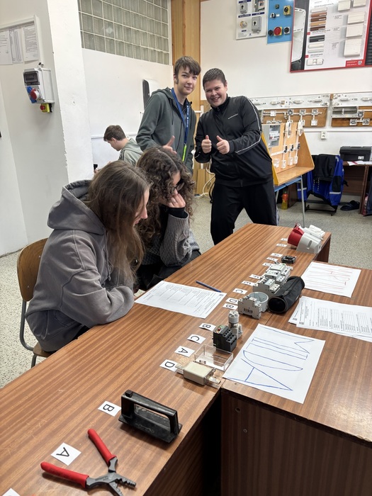 Dne 5. 12. 2024 se žáci Martin Velík, Petr Šašek, Amálie Doskočilová a Anna Daňková zúčastnili soutěže na půdě OA a SOŠ zemědělské a ekologické v Žatci. Soutěž byla zaměřena na poznávání technických nástrojů a přístrojů, jejich činnost a jednoduchá fyzikální měření v elektro laboratoři. Žáci se v rámci akce dozvěděli bližší informace o využití odpadů, uhlíkové stopě a měli také možnost se seznámit s ukázkou prací v dílnách. Ač výkony našich žáků na první tři místa nestačily, Martin s Petrem prokázali velmi dobrou znalost spojovacího a elektroinstalačního materiálu, elektronářadí a druhů zásuvek. Dívky si naopak velmi dobře vedly v biologické laboratoři, kde excelovaly ve kvízu zaměřeném na ekologii a čisté životní prostředí.