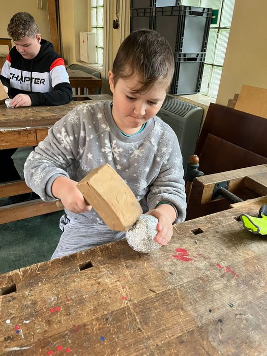 Další zajímavé zkušenosti získali žáci 5. třídy v tandemové hodině přírodovědy, kdy si vyzkoušeli, jaké vlastnosti (např. kujnost) mají kovy.
