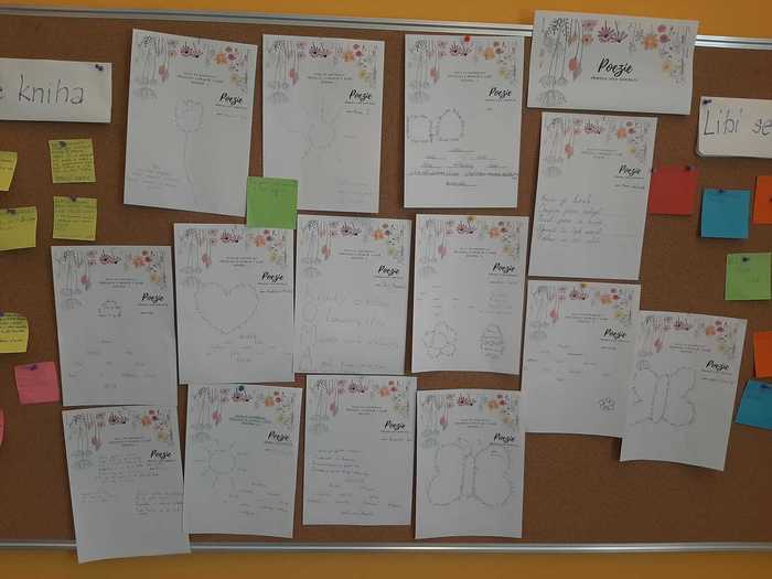 K jarní náladě přispěla v 7. třídě i „Chvilka vlastní poezie“. Žáci si mohli vybrat, co budou tvořit: