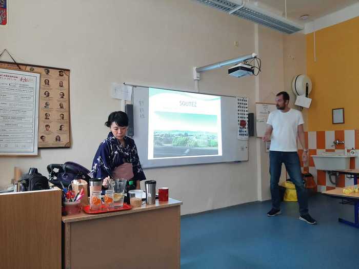 Například Jana Drápelu a jeho japonskou manželku a děti. Pak už poslouchat, zapojit se do soutěží – vědomostních, odhadujících…  také si vyzkoušet nabírání hůlkami a další jiné hry a aktivity. Program se nám velmi líbil a nadchl nás pro cestu do Japonska.