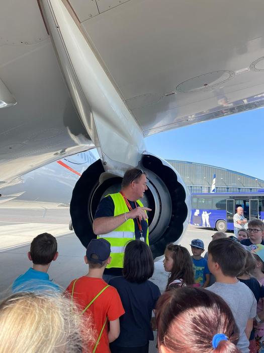 Poté nás čekala bezpečnostní kontrola a následně jsme nasedli do autobusu, který nás vezl po celém letišti. Bylo fascinující sledovat pohyb letadel na ranvejích a pozorovat různé typy letadel, které tu přistávaly či odletěly. Udivovali jsme se nad impozantním rozměrem letadla Boeing 777-300 a obdivovali soukromé tryskáče, vrtulníky a další letadla, která na letišti byla.Jedním z vrcholů výletu byla prohlídka letadla, kde si každé dítě mohlo vyzkoušet být pilotem a usednout si na místo kapitána. Viděli jsme také německé letadlo, které zrovna vzlétlo s německým prezidentem. Na závěr jsme si užili chvíle odpočinku a svačiny, kterou děti dostaly. Byl to skvělý zážitek plný nových poznatků o leteckém provozu.