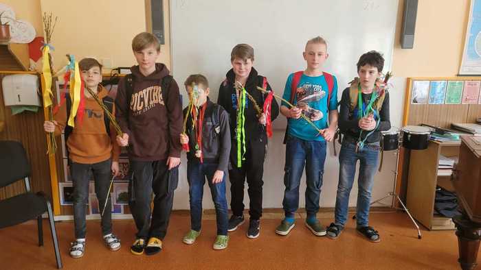 Blíží se svátky jara a Už od pradávných dob jsou symbolem jara vrby. Lidé po staletí věřili, že vrbové proutky posvěcené na Květnou neděli mají zvláštní moc a že na Velký pátek může vrbový proutek otevřít zemi i skálu a ukázat poklad. Při povídání o tradicích jsme se v naší třídě rozhodli, že se pokusíme uplést velikonoční pomlázku. Přinesli jsme proutky z vrby, protože ty jsou ohebné, tvárné a pružné. Klasická pomlázku jsme pletli z 8 proutků a další proutky byly zapotřebí na zakončení. Zjistili jsme, že pletení není až tak jednoduché, přesto, se některým z nás podařilo pomlázku uplést.