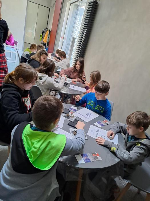 Po shlédnutí výstavy si žáci zkusili vytvořit svá díla.