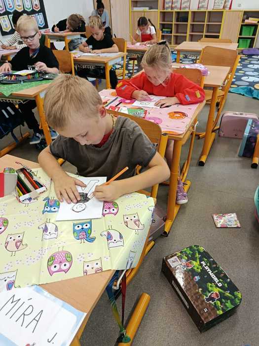 Naši prvňáčci jsou již v plné práci. Procvičují čísla do 10, pomocí uvolňovacích cviků se připravují na psaní a také se učí písmenka, aby mohli brzy číst. Občas to doplníme písničkou nebo říkankou a ve třídě je nám dobře. Kromě učení se některé děti věnují sportu. Třeba Kubíček Hajm vyhrál pohár a medaili za 3. místo v závodě dobrovolných hasičů. Všem prvňákům držíme palce, ať se jim daří!