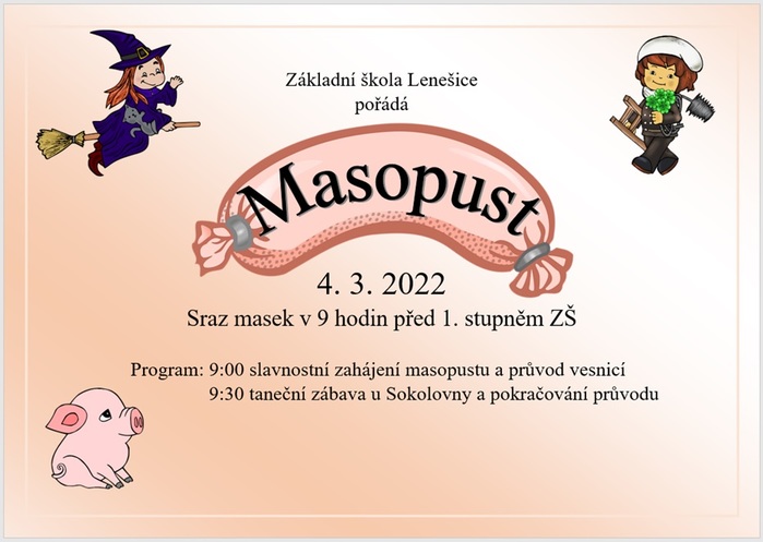 V pátek 4.3.2022 pořádáme MASOPUST.
