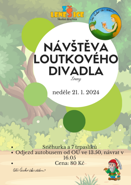V neděli 21.1.2024 navštívíme se školní družinou v rámci projektu Celé Česko čte dětem Loutkové divadlo v Lounech.