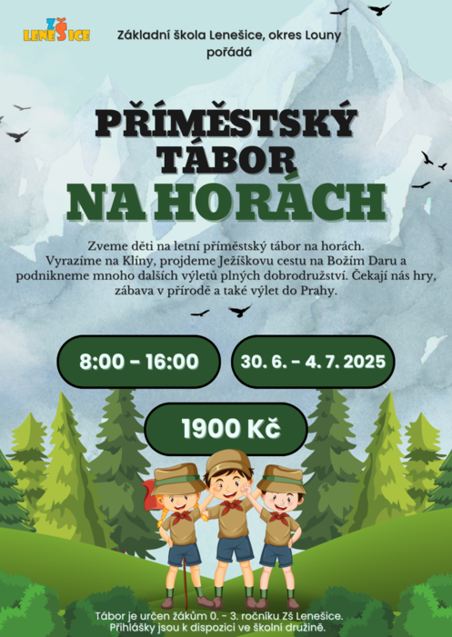 Otevíráme přihlašování na letošní příměstský tábor - přihlášky a další informace k dispozici ve školní družině.