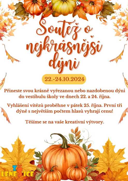 Připravujeme pro Vás soutěž o nejkrásnější dýni. Těšíme se na Vaše výtvory ! :)