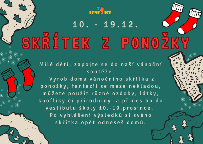 Úvod > Informace ze školy > SOUTĚŽ - SKŘÍTEK Z PONOŽKY