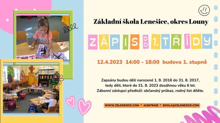 Více informací o zápisu do 1.ročníku naleznete zde.