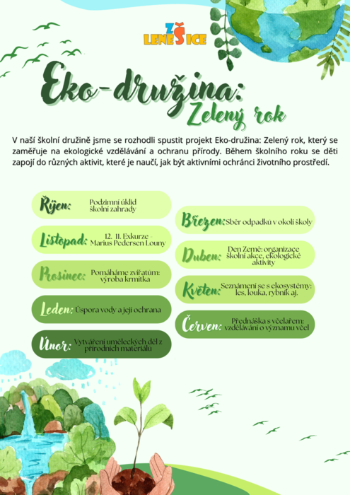 Ve školní družině spouštíme projekt EKO-DRUŽINA, ve kterém se zaměříme na ekologické vzdělávání a ochranu přírody.